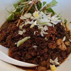 | メニュー | メニューの写真を見る 汁なし白胡麻担担麺 880円 |