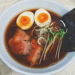 醤油のすっきりした味わいの後に昆布、鶏、魚介の旨味がくる一杯。