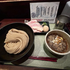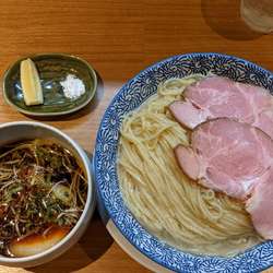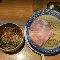 つけ汁はさっぱりとしており、その中に鶏清湯に魚介出汁でよくあるパターンですがカエシ、鶏、魚介が全てバランスよく整えられておりめっちゃ美味いです😋