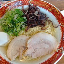 久々にいただく。チャーシュー2枚、キクラゲ、刻みネギの具材、驚くのは清んだスープ、透き通るビジュアル。まずはそのスープからいただく、さらにと軽い感じだがしっかりと深みのある動物系の旨味がガツンと広がる、あっさりなのに唇に脂がしっかりとつく、これが不思議でコクも後にしっかりとある、とんの癖が一切無いが旨味が感じられる。塩加減じゃまろやかで丁度良い。麺は細麺でシコッと歯切れの良い茹... 続きを見る