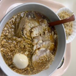 スープを1口飲んでみると口に広がるのは鶏ガラとニンニクチップの旨味、美味い。