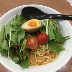 期間限定と思われる本メニュー。タップリの水菜とミニトマトと健康そうなビジュアル。豆乳でまろやかに仕上げたと言う冷製担々スープ。ゴマ感はあるが辛さは控えめ、見たまんまのアッサリとしている、暑い時期にピッタリ。合わさるのは中細麺でしっかりと〆られコキコキとした食感が心地良い。タップリの水菜、独特の苦味もゴマスープに浸せば気にならない。挽肉餡もしっかり搭載されておる。半味玉も入ってこ... 続きを見る