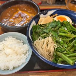 | 備考 | 食券を買ってから並ぶ ライス2杯サービス(残した場合は100円) つけ麺はあつもり可能 火焔・カリーは辛さを5段階で選べる 卓上アイテムは醤油ダレ・酢・テーブルコショー・大根おろし・紅生姜・マー油・刻みニンニク 大根おろしは季節限定 紙エプロンあり |