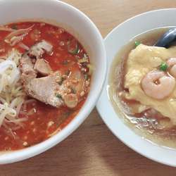 いつもはザーサイ炒飯と坦々麺のセットだが、今日は前から気になっていた中華飯をチョイス。名店の餡掛けおこげを連想させるような旨味のある野菜たっぷりの餡がかかってとても美味。坦々麺は相変わらずの安定の旨さ。これで800円だからやめられない。