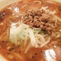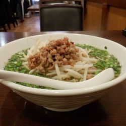 暑い日でしたが汁そばの標題を発注。坦々麺は初めて。