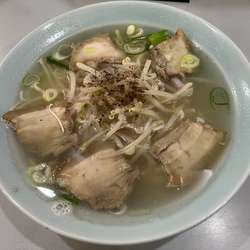 中太ちぢれの黄色い中華麺で柔らかい茹で上がり