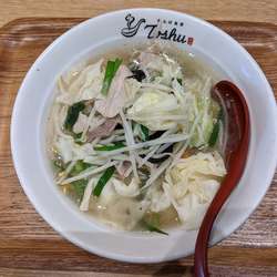 タッチパネル式のメニュー表で「野菜塩たんめん」と「3個餃子」をタッチして注文。