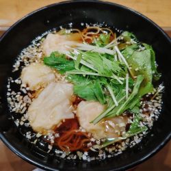 あっさりとした塩味のスープにおろし生姜を溶かすと辛味とさっぱりさが加わっていくらでも飲めるものになります。麺は細麺ですがしっかりとした歯応えが感じられます、鶏肉にはソースがかかり、よくあっていました。