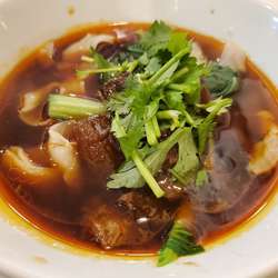 麺は、固めの刀削麺。こちらも好印象。