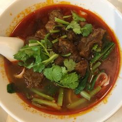 スープは、なかなかの辛さの麻辣味。酸味もあり、どこかトマトのような味わいも漂う。
