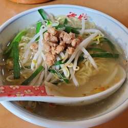 ラーメン(600円)を。スープは、油分のないクラシカルタイプ。カエシがしっかりと効いている。麺は、もったりとした細麺。具は、青菜・ネギ・メンマ・チャーシュー。チャーシューは縁の赤いタイプで、個性的な味わい。麺類、好みのものがなくて残念だが、この価格は嬉しいです。