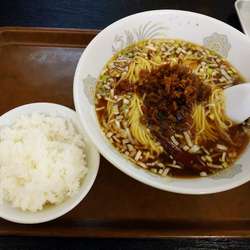 今日のランチは普段使いのこちらへ。高菜麺セット、810円。キレのある醤油スープに高菜、刻みネギ、鷹の爪が乗っています。小ご飯付き。高菜はそれほど塩辛さは感じず醤油系の濃いめの味付けかな?細めの麺は茹で上がり良く、シンプルながら美味しいラーメンでした。辛さはそうでもありません。