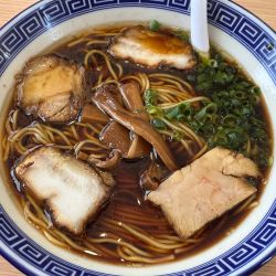 黒いスープが特徴的な支那そばは着席してから着丼までの時間が早くて少しビビった。スープはまろやかなのに対し焼き肉丼はピリ辛でどちらも美味しかったです。