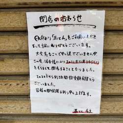 これまで約三年間当店をご愛顧頂き誠にありがとうございました。