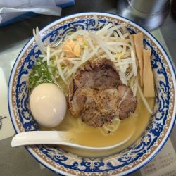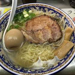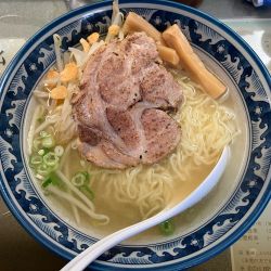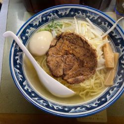 金曜日の13時37分に到着、入店。着席して標題を口頭注文。ランチタイムは前金制で現金会計。氷入りのグラスが渡されたので麦茶をセルフで注ぐ。店内はカウンター7席ほど。先客1名、後客2名。チャーシューをバーナーで炙りながら、麺は2分30秒近く茹でられて着丼。スープは濁りがあって出汁感がしっかりある尖りのない塩味。油感はほぼ無くさっぱりとしている。ニンニクの風味はあるが嫌みない程度で... 続きを見る