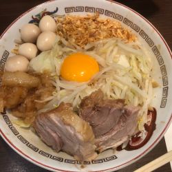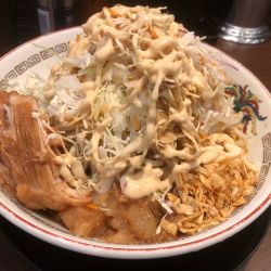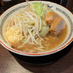 味噌山小、アブラ、限定トッピング焦がしネギ豚じゃ🍜