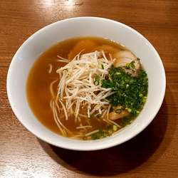 歯ごたえの良いチャーシュー2枚にもやし・メンマ・ねぎをトッピングした、ツルツル麺のさっぱり塩ラーメン。