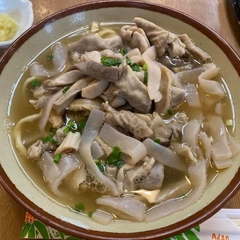 パリッと効いた鰹出汁と平めんの組み合わせは名護の宝。