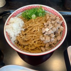 ニンニク、唐辛子、ゆず酢、胡麻、胡椒、ラーメンだし?、紅生姜、温泉卵を入れてやっと食べれるような味になる。圧倒的に何かが足りない。ニラやマヨがあるといいかも(台湾まぜそば、、、)