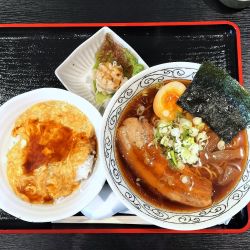 チョイスは半チャン角蒸ラーメンランチ880円。このチャーハンをフワトロ天津飯(天半)に変更して+120円。計1000円のセットとします。明るく元気な... 続きを見る