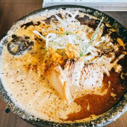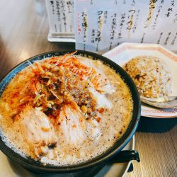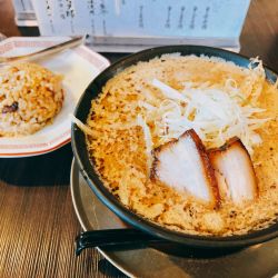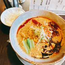女子高生ぽい可愛い2人の店員で作るラーメンは胡麻がホイップされた様な感じで旨味、甘味、コクがあり、マー油、辣油、味噌の旨味と重なり合い超旨い🤣昇天😇