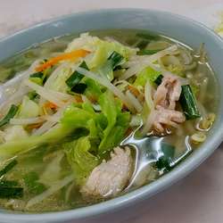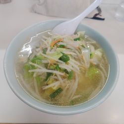 スープがしょっぱいので完飲には至りませんが、炒め野菜がたっぷり入った透明スープはコクがあって美味しいです♪