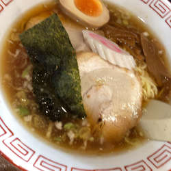 麺はポキポキ感が残る感じの細麺、昔ながらの中華そばという印象。半玉、ナルトも入っておりビジュアルはよい。