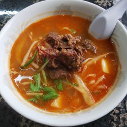 11:55出来上がり。全面餡で熱そうだ。麻婆というほど豆板醤は効いていないです。醤油餡に辛味辣油が効いてる感じ。