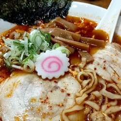 土曜日の午後2時過ぎに訪問。先客1名、後客2名。店内の券売機で左上の法則に従い、標題の品をポチっと。チケットをマスターに渡して、テーブル席に着席。待つこと数分で配膳された丼には、豚バラチャーシューで、メンマ、ナルト、海苔、刻みネギ、麺は中太縮れ麺、醤油スープは至ってシンプル。自分の好みのベーシックな佐野ラーメンスタイル。ラーメンの原点で、素朴な美味さ。ご馳走様でした。
