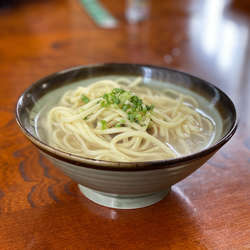 鰹ベースのあっさり出汁。麺は中太ストレート。