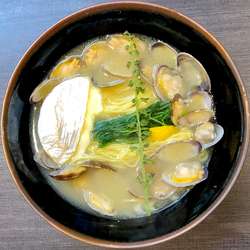 豊かな大山どりの出汁に天然国産食材ならではの穏やかで優しい旨味🐓トロけるcheeseの塩味が重なりコク深める清湯Soup🥢確りとした身が詰まった大蛤🐚啜り心地良く飽きのこないS細麺に閉店が惜しまれる一杯😋