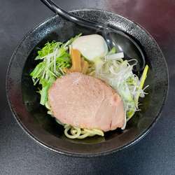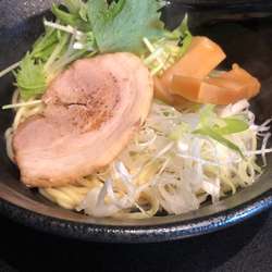 油そば(700円)を。麺は、むっちりとした太麺。長多屋製麺の麺箱有り。味付けは醤油ベースなのだが、自分には薄味。卓上にカエシ設置なら問題ないのだが、残念ながらカエシは不在。具は、ネギ・みずな・メンマ・チャーシュー・味玉。卓上の味変アイテムは貧弱だが、割りスープの設置あり。接客、とても好印象でした。