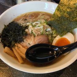 程なく着丼。2年前と同じ味わいの節系のスープ。酸味は鯖節由来かな?