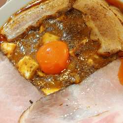 券売機制 決めていた麻婆麺並150gを 茹で上がりは300g以上 極厚チャーシュー丼(380円)もポチる