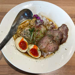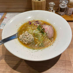 特製なので厚切りのラムチャーシューが3枚…これがまた絶品。つくねは豚?鶏?香草が練り込んであり風味も良くこれまた... 続きを見る