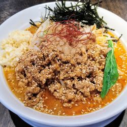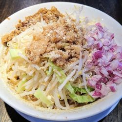 | 備考 | 麺少なめ(ミニ200g)、麺半分(ミニ150g)指定可能。 限定メニューは、公式Twitterを参照。 ヤサイ、ニンニク、アブラは配膳直前に確認。(カラメは卓上調味料で調整) ・少なめ・普通・マシ・マシマシ・なし 卓上調味料は以下の通り。 ・ブラックペッパー、カイエンペッパー、カラメ用タレ、お酢 |