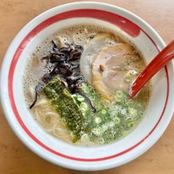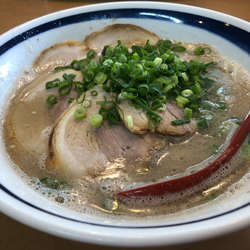 スープは豚骨の香り、旨味共にしっかりしています。渋みや苦味も混在していますが、味を損なう程ではありません。また、丼の底の方には多少骨粉が沈澱していますが、非常に細かく少量であるため、基本的にはザラつきも気になりません。