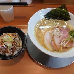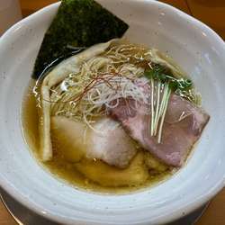 透き通ったスープはいかにもあっさり系という一杯です。スープは動物のような魚介のような感じであっさりしています。どれかひとつの素材の旨味のみが感じられるものではなく一体感があってなかなかです。けっこうあっさりしていますが塩気はわりと強くなっています。旨味は若干控えめで少し物足りなさを感じます。
