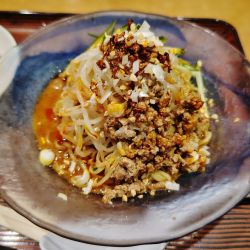 辛さはピリ辛でちょうどよく、あと引く味わいになっています。胡麻の風味もしっかりと感じられます。麺は細麺でしっかり締めてありコシが強くタレにもよく合っています。具材には挽肉、ナッツ、モヤシ、キュウリなどで、どれもよく引き立て合っていました。