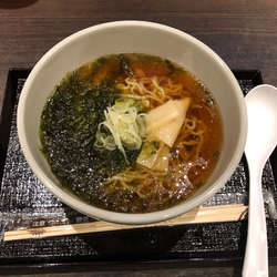 スープは鶏ガラメインの動物系にバラ海苔の風味。