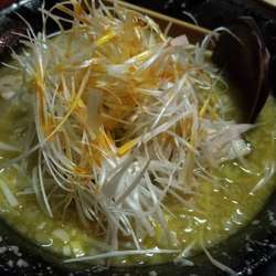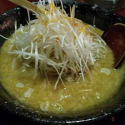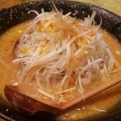 白髪ネギ、刻みネギ、その下にもやし、分厚い丸チャーシューが1枚の具材。スープには背脂が浮く。スープはライトな感じの味噌の風味と味わいが広がる、動物系の旨味がそこに合わさり、味噌の割にはさっぱりとしてる。麺は太麺で、少し平たい縮れ麺でシコッとした食感でスープの旨味が麺みに合う、そこに絡み付く白髪ネギのシャキっとした食感に風味が味噌に合う、刻みネギはその強めのネギの味わいがアクセン... 続きを見る