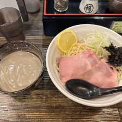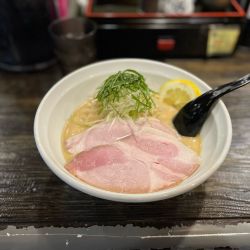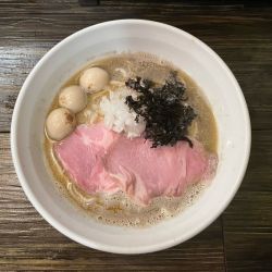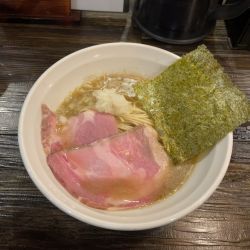 GW狭間の(金)12:35、中5組、外8人目〜約40分で着席、と同時に着丼。限定にグラグラするも初志貫徹。塩味ジャストのサラっとスープ、煮干し堪能、苦味も雑味も全部旨い。煮干し完成度の高さが伺える一杯。