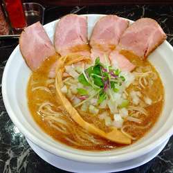 気になっていた初のお店。メニューが多く悩むが、ガッツリと食べたかったのでこれにしてみた。まずは驚き👀‼️豆苗の青さの下に、モツ、チャーシュー4枚、炙られた角切りチャーシュー、背脂、もやし、刻みニンニクと具材が凄い。スープは魚粉がしっかりと見えるほど入っている、さらりとしているが動物系の旨味がビシッと感じられ、そこに魚粉の香ばしさと味わいが加わってくる、魚粉のえぐみも無い、さらに... 続きを見る