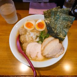 54分に着丼しました。トッピングは、海苔2枚、糸唐辛子、味玉ハーフ×2、鶏チャーシュー2枚... 続きを見る