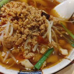 挽肉、もやし、ニラの具材にスープにはラー油が浮く刀削麺。スープは香ばしさのある醤油ベースにふわりとした香辛料が奧に感じられて、さっぱりと旨い。しっかり太さのある麺はモチシコッっとしっかりとした食感で癖になる食感、ツルリとしたのど越しも良く普段の麺とは違ってしっかりとしたコシがある、麺自体の味わいも良い。ピリッと唐辛子の辛さが効いてくる。旨辛、そこにシャキシャキのもやしのさっぱり... 続きを見る
