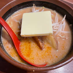 注文はリッチに伊勢味噌のチャーシュー麺。煮卵とバターもトッピングしました。