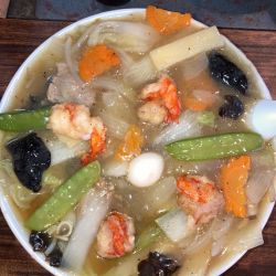 上に乗ったネギがまた美味しい。美味しいネギを、ごま油とごまであえて乗せてある。