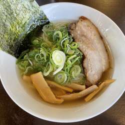 塩ラーメンはかなりあっさりめ。ほんのり魚介の風味があります。麺はやや細麺ストレート。チャーシューは旨み十分ですが少し固いかな。