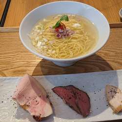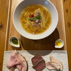 卓上にある食べ方のマニュアルにそって実食🙏麺が美味しかったので塩だけで充分に美味しくいただけた✨汁は昆布水のつけ麺スタイルなので前半は濃い目の味🍜肉とゆずは麺と汁の両方に入っていてお腹いっぱい🐖店内もおしゃれなインテリアで、新メニューも増えているようで、また来たいと思うお店でした🌈