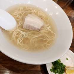スープ:豚骨の獣臭も感じ取れる透明豚骨塩スープ。塩分強めです